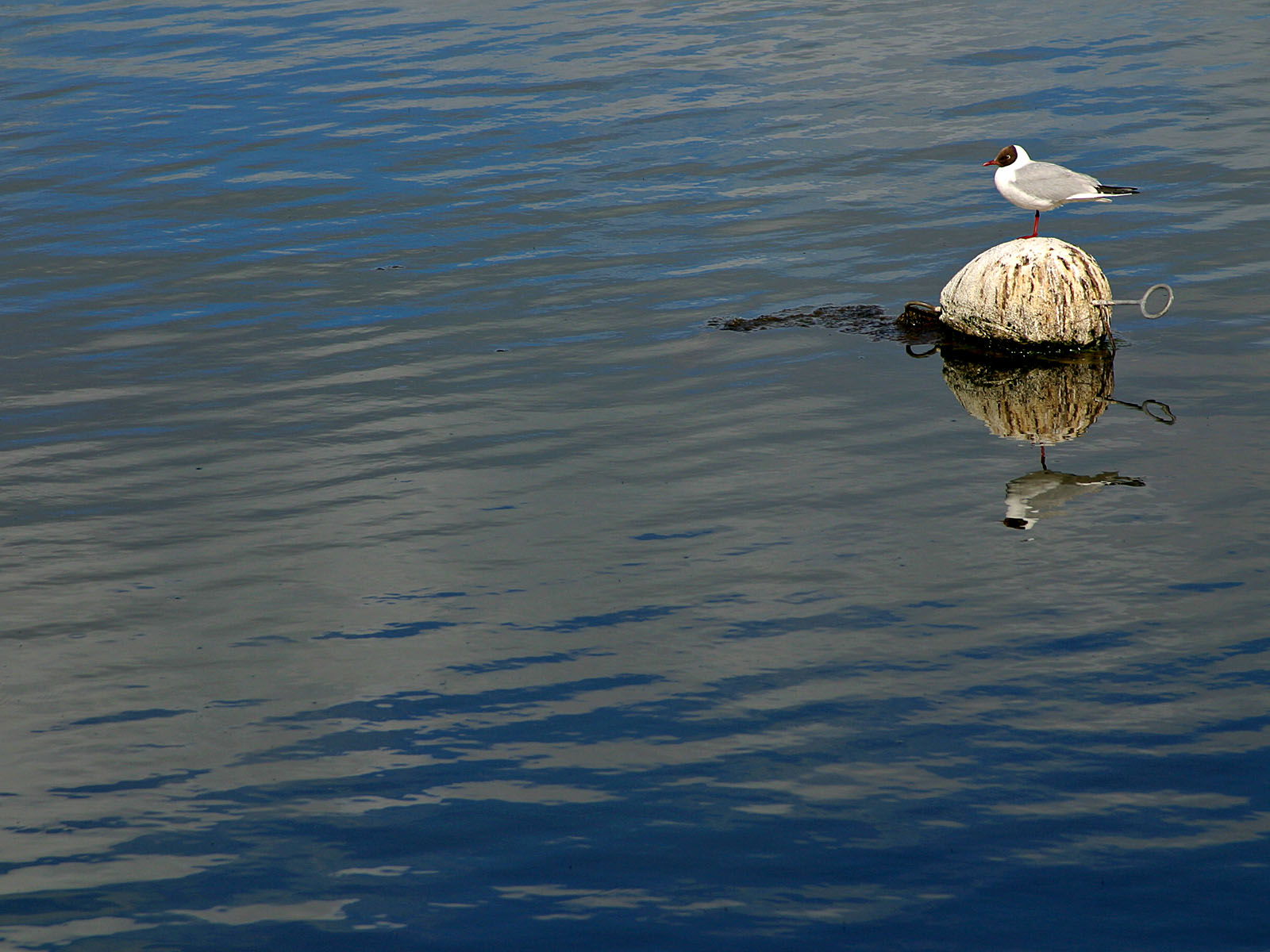 Lachmöwe auf Bootsankerplatz, Schweden 2002.